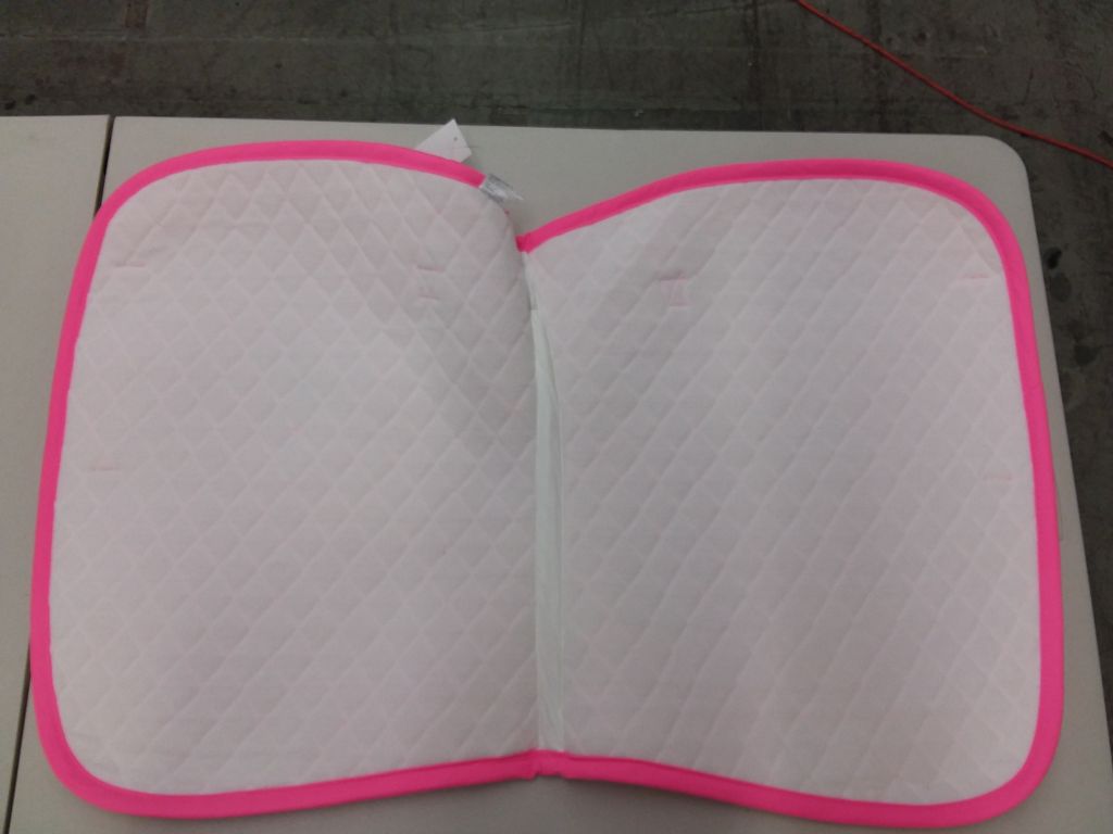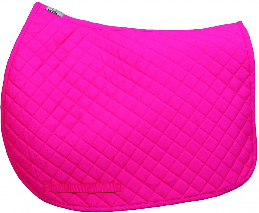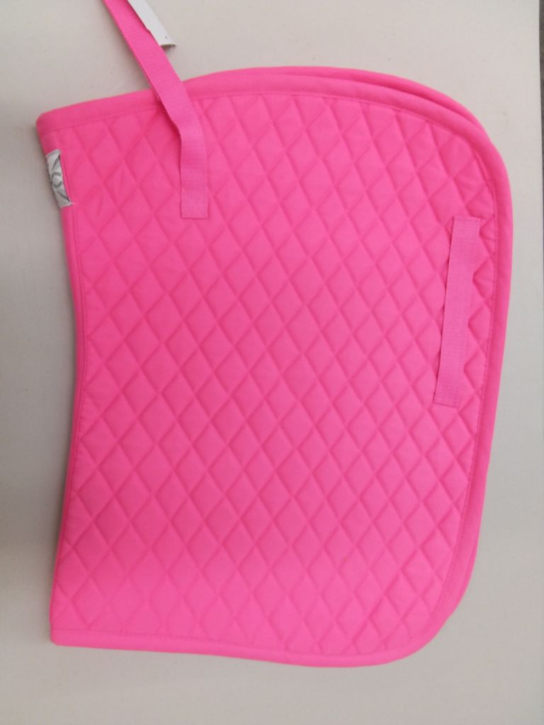 Basic pony saddle pads, neon pink surface with white cotton, straps, comfortable texture