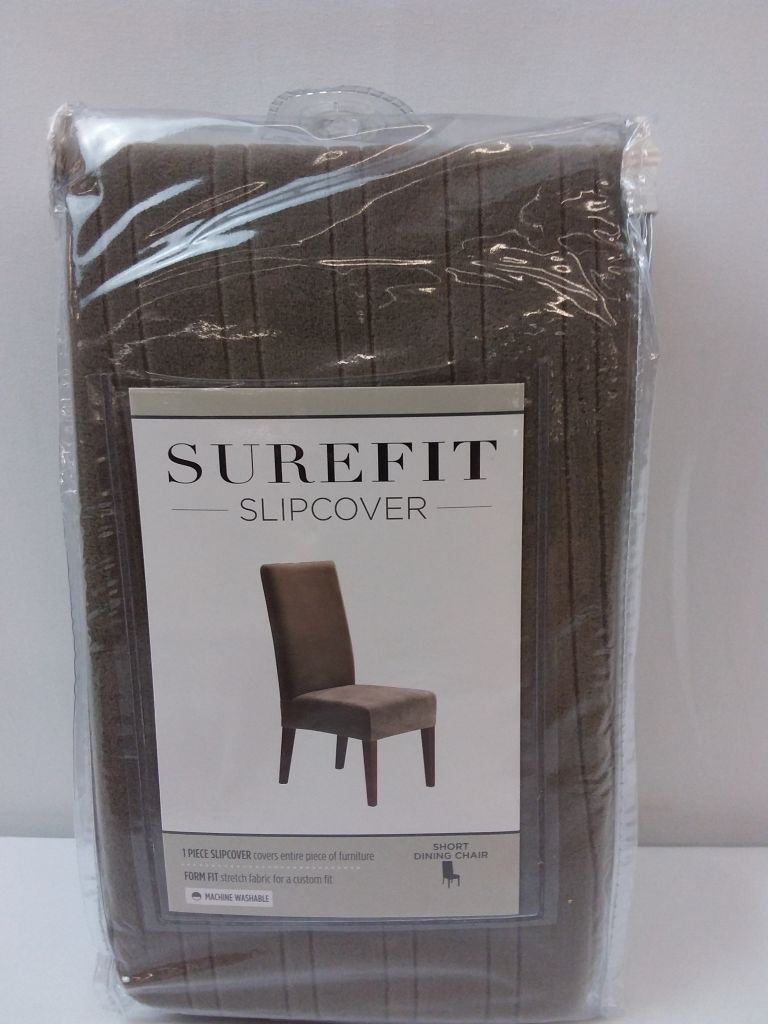 Stretch Pinstripe Short Dining Room Chair Cover Taupe/Brown - SureFit