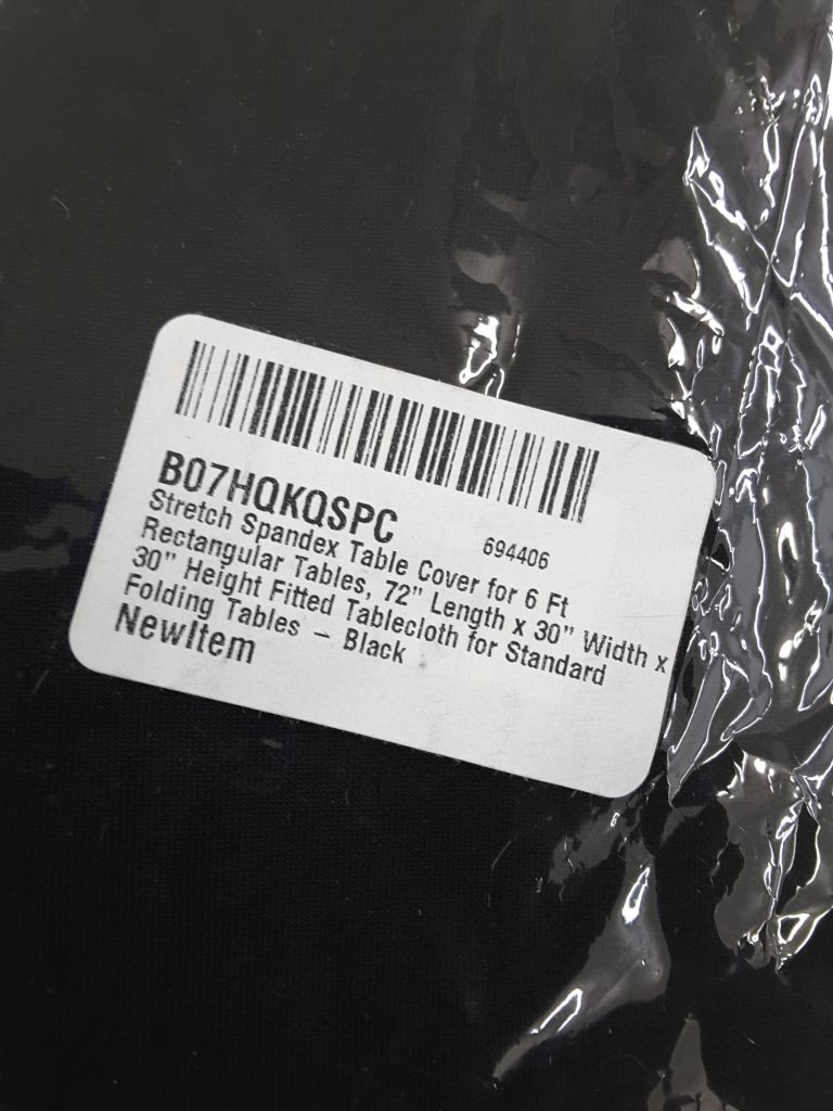 72" L x 30" W x 30" H Fitted Tablecloth for Standard Folding Table, Black, 10% Spandex, 90% Polyester.