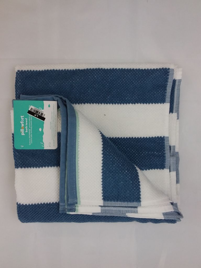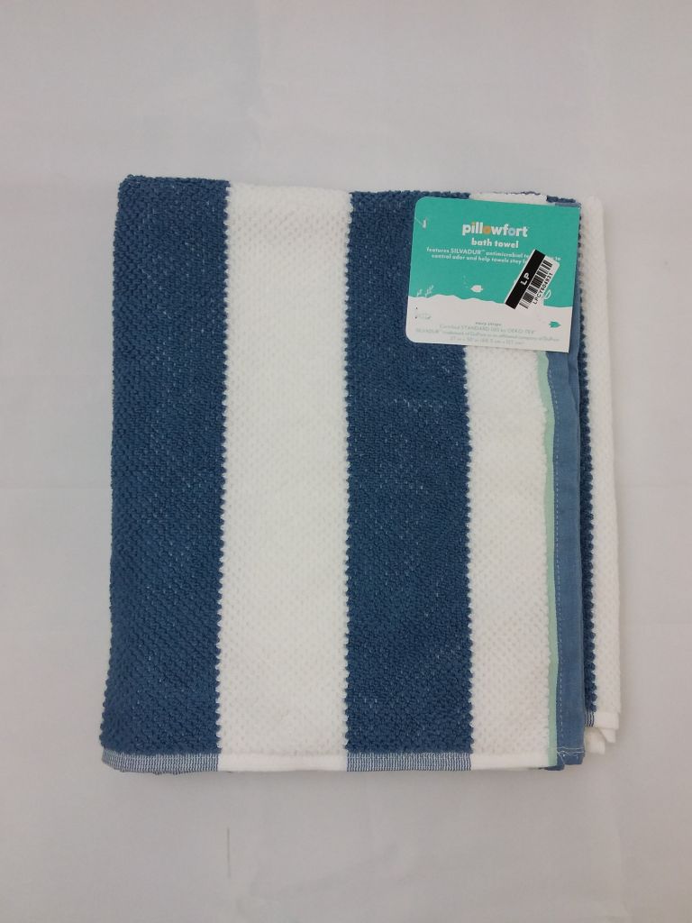 Pillowfort Striped Bath Towel Navy with SILVADUR Antimicrobial Technology