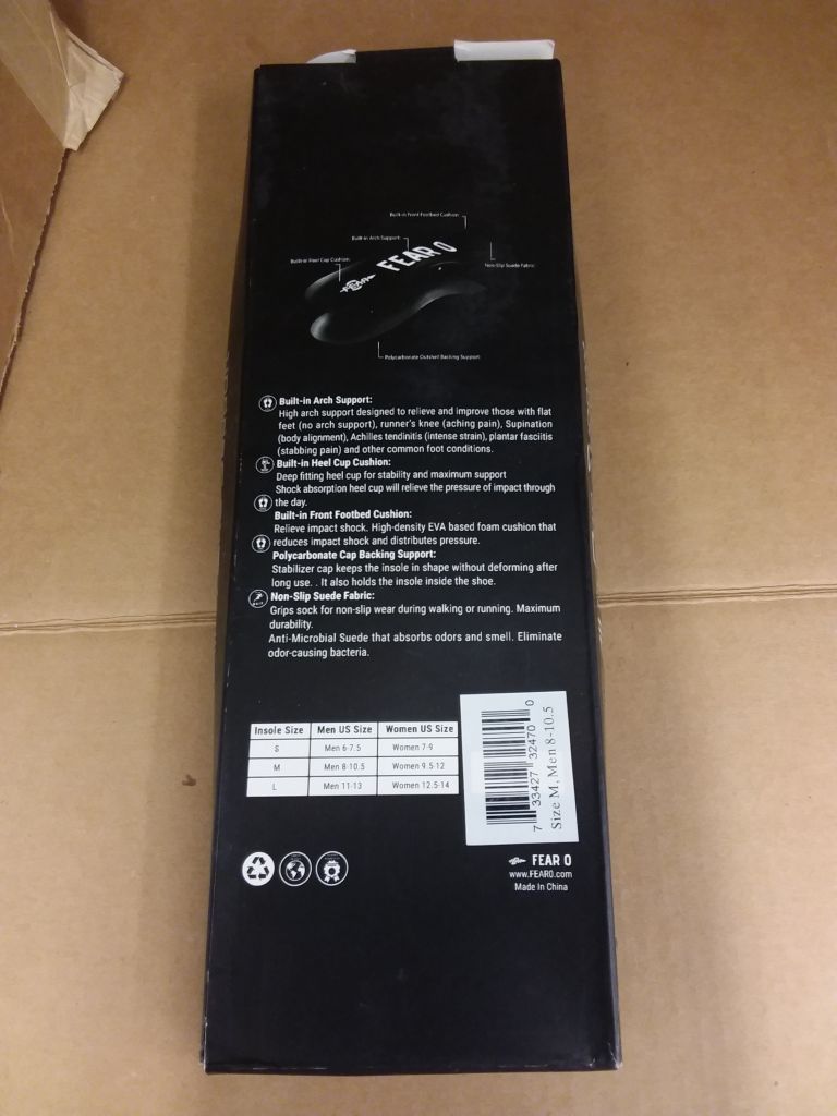 Fear0 NJ Heavy Duty Firm High Arch Support Work Insoles - Full Length Orthotic Orthopedic Inserts for Plantar Fasciitis, Flat Feet Fits Shoes and Boots Men 8-10.5, Women 9-11.5