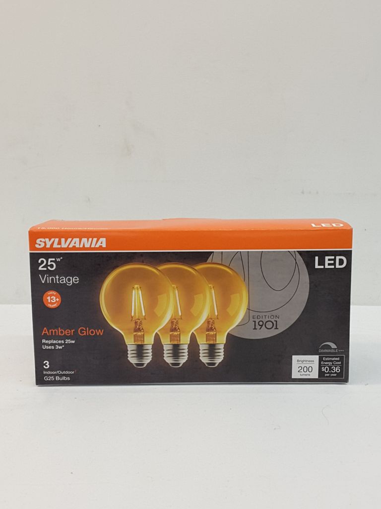 Sylvania 25W Vintage 3 Pk Amber Glow LED, Brightness 200 lumens, Edition 1901