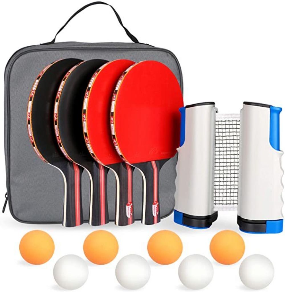 Table Tennis Set, 4 Ping Pong Paddles with 8 Table Tennis Balls and Retractable Ping Pong Net