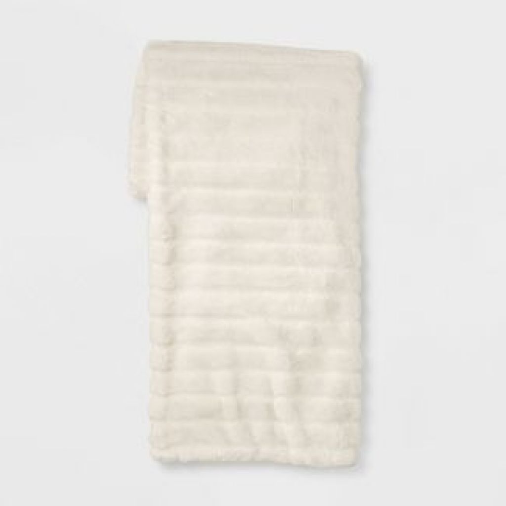 Textured Faux Fur Reversible Throw Blanket Cream - Project 62