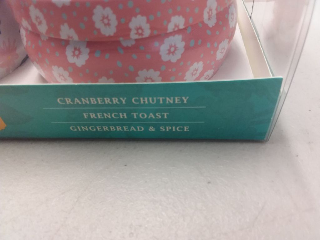 These tins house delicious, warm and decadent scents of Cranberry Chutney, French Toast, Gingerbread & Spice which will make your home smell like a bakery.