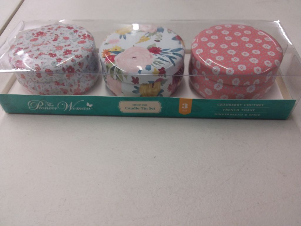 The Pioneer Woman 3-Piece Baked Goods Collection Tin Candles Set, Cranberry Chutney, French Toast, and Gingerbread & Spice, 4.95 oz