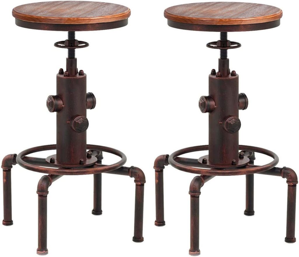 Topower American Antique Vintage Industrial Barstool Solid Wood Water Pipe Fire Hydrant Design Cafe Coffee Industrial Bar Stool Set of 2