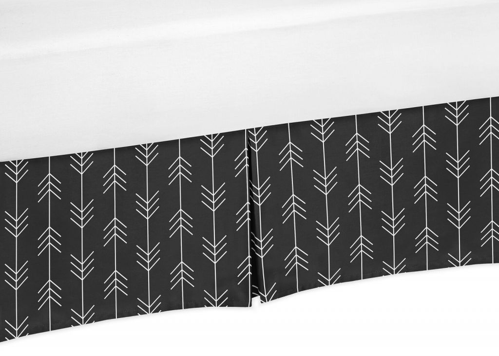Twin Bed Skirt Dust Ruffle By Sweet Jojo - Rustic Patch Black White Woodland Arrow