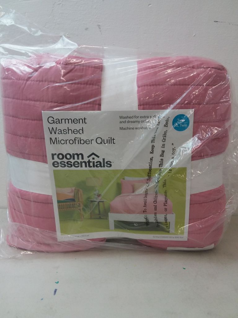 Twin/Twin Extra Long Garment Washed Microfiber Quilt Pink