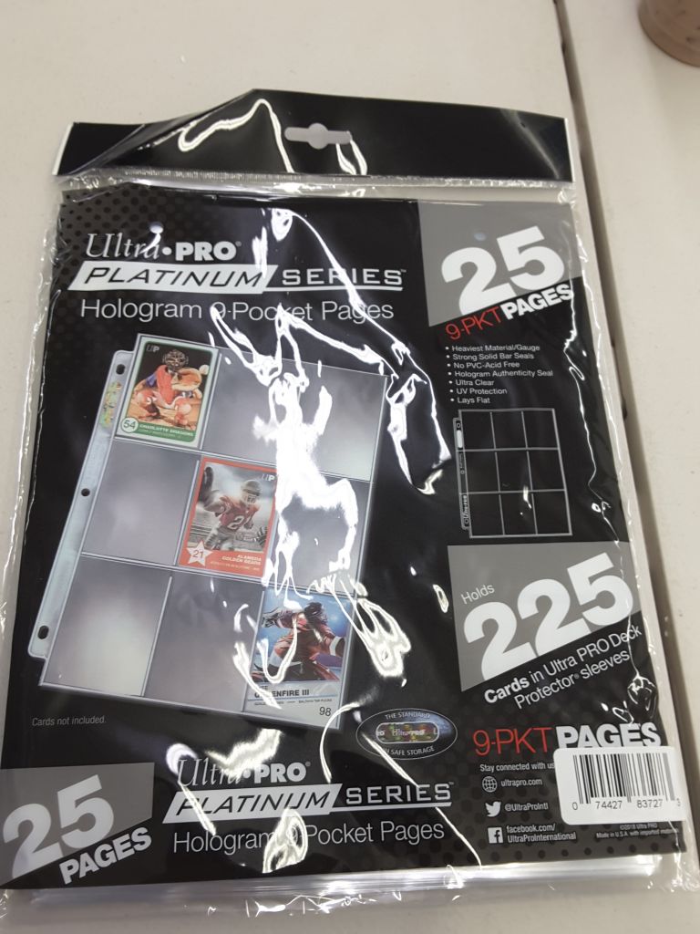 Ultra Pro platinum series hologram 9 pocket pages, 25 pocket pages. Holds 255 cards, UV protection, lays flat, acid free, and ultra clear