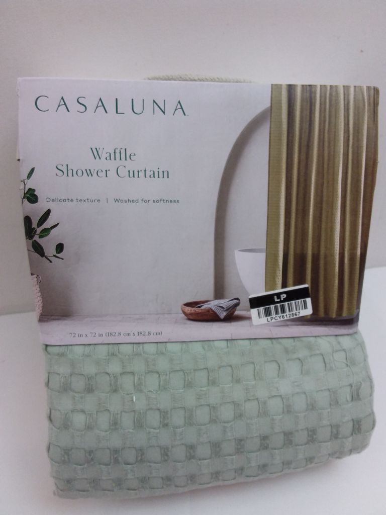Waffle Shower Curtain Green-CASALUNA