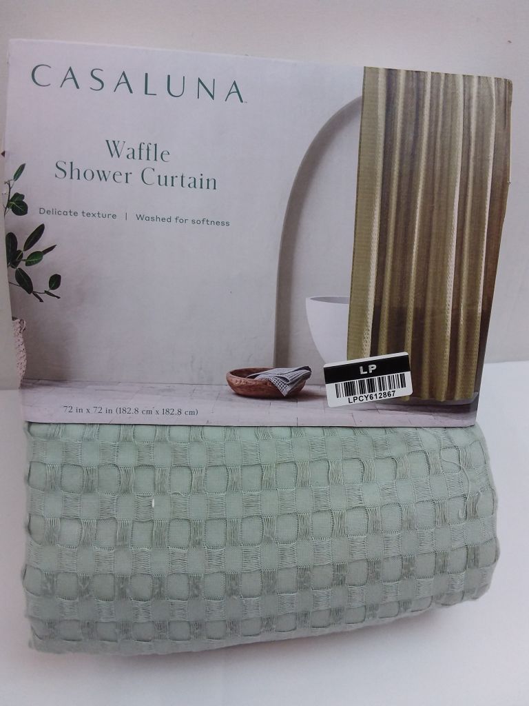 Waffle Shower Curtain Green-CASALUNA
