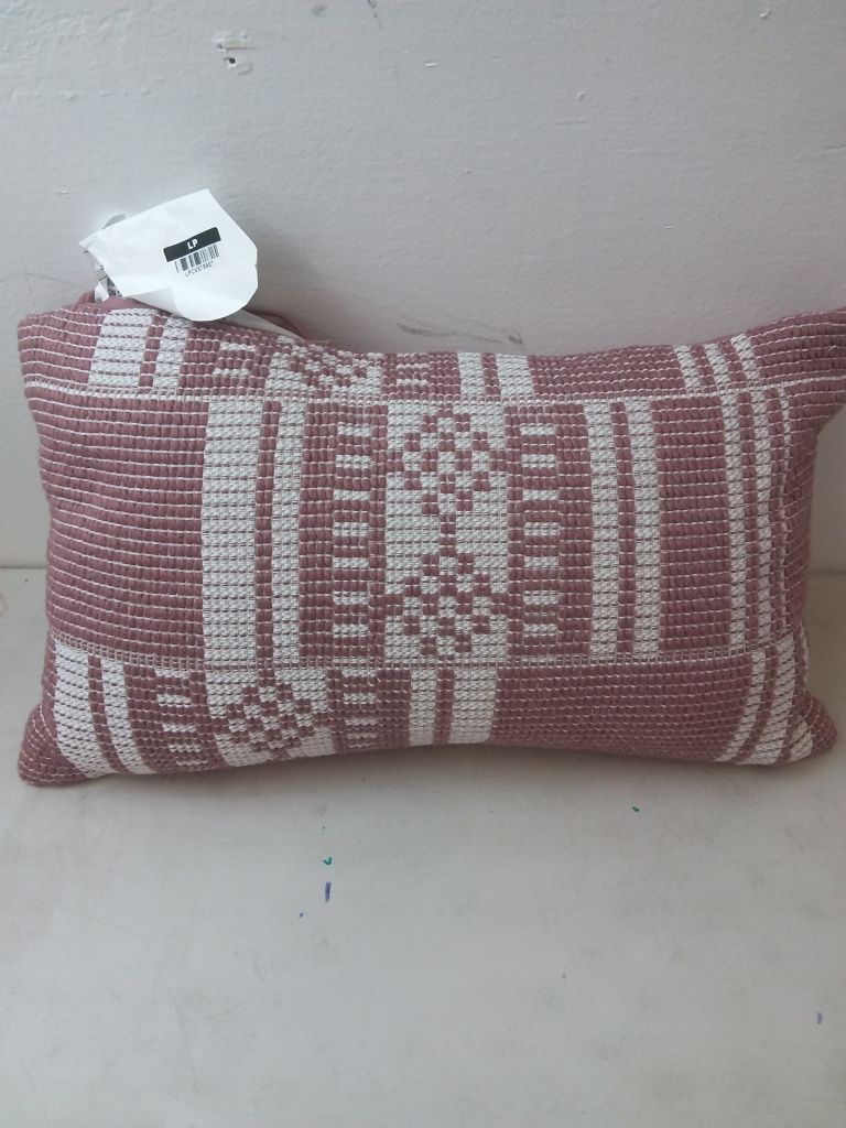 Woven Pieced Pattern Lumbar Throw Pillow Mauve/Cream