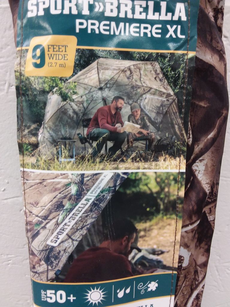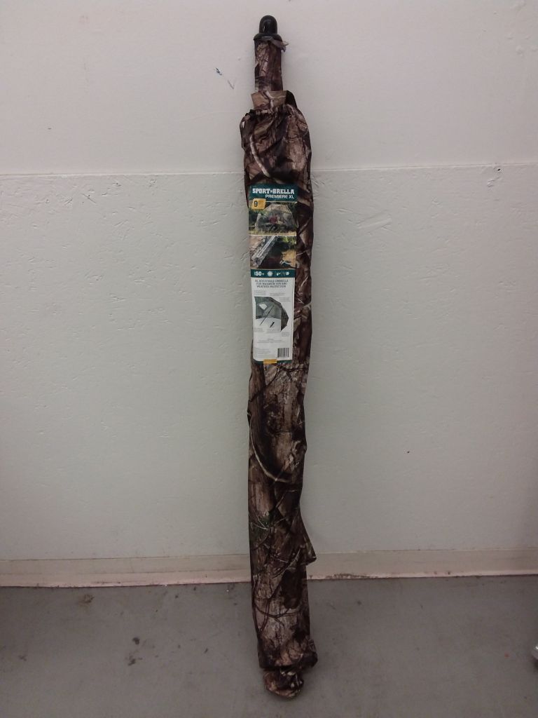 9-foot umbrella canopy features UPF 50 plus sun and weather protection for the beach, camping, sporting events, concerts and festivals, internal pockets store a phone, snacks, or other gear; carry bag, stakes, and guy lines are included; packed umbrella measures 61x4.4x2.8 inches and weighs 9 pounds