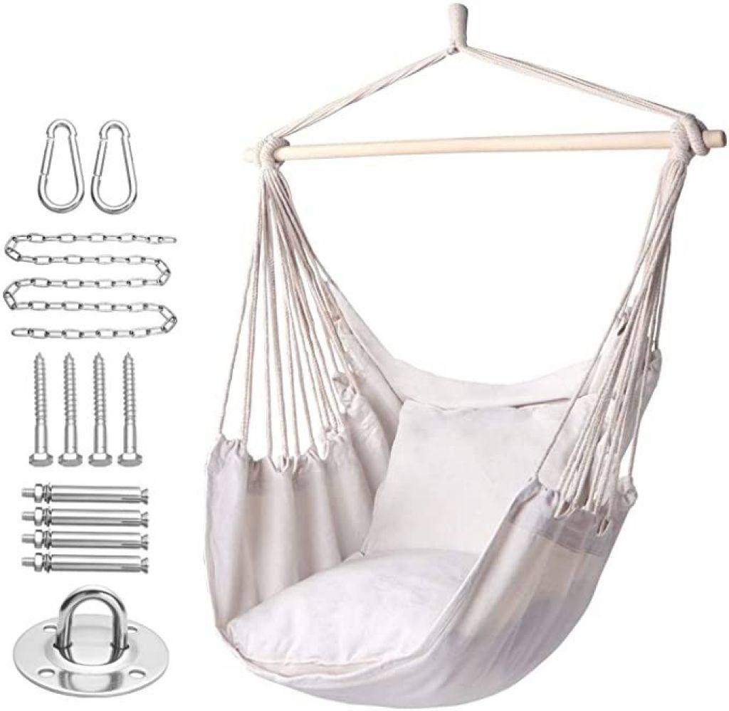 Y- STOP Hammock Chair Hanging Rope Swing, Max 320 Lbs, 2 Seat Cushions Included, Hanging Chair with Pocket, Quality Cotton Weave, for Indoor and Outdoor
